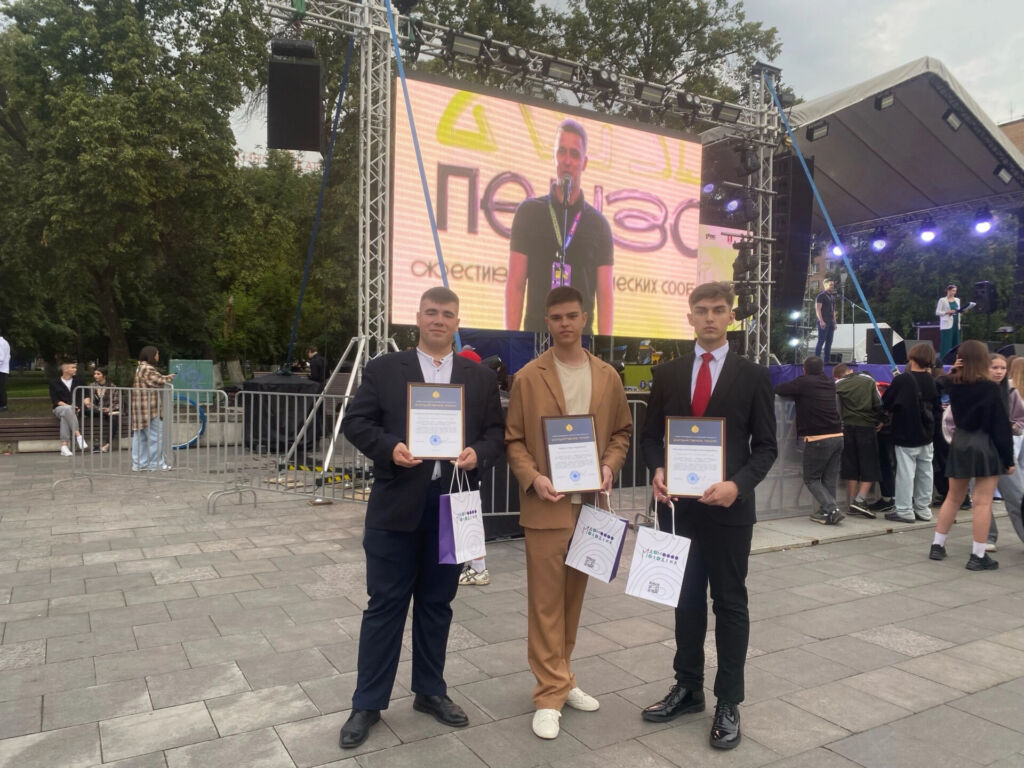 29 июня, в День молодёжи, на Фонтанной площади состоялось торжественное награждение активной молодёжи Пензенской области. Среди награждённых — студенты ГБПОУ «Пензенский колледж искусств» Каравайкин Александр, Лапшов Александр и Чадаев Егор. Наши студенты проявили себя как инициативные, творческие и ответственные лидеры в студенческой среде, внося значимый вклад в развитие молодёжного движения региона.