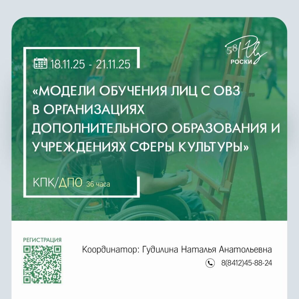 📌 Новый поток слушателей в рамках программы “Модели обучения лиц с ОВЗ в организациях дополнительного образования и учреждениях сферы культуры”.