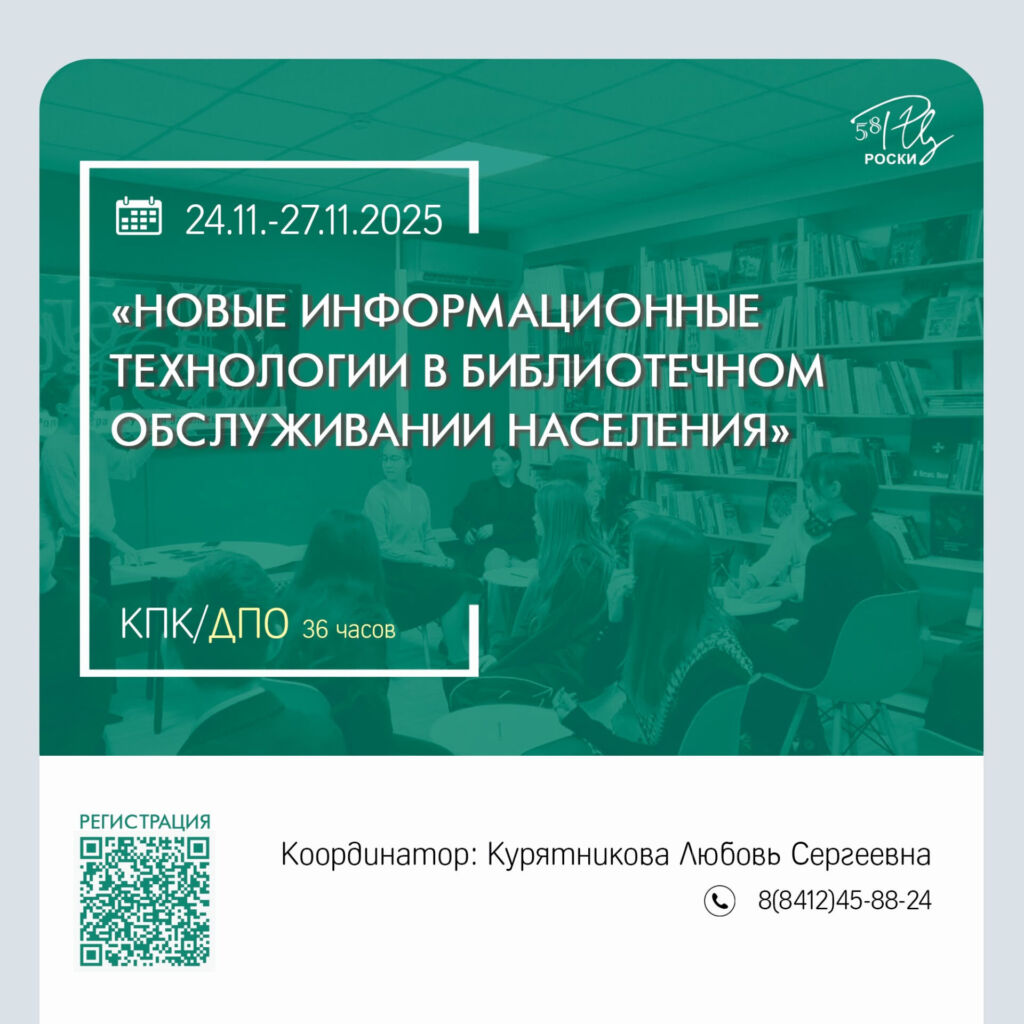 #РЦроски58 #КурсыПовышенияКвалификации #Библиотека #ИТвБиблиотеке #БиблиотечныеСпециалисты #ОбразованиеПенза