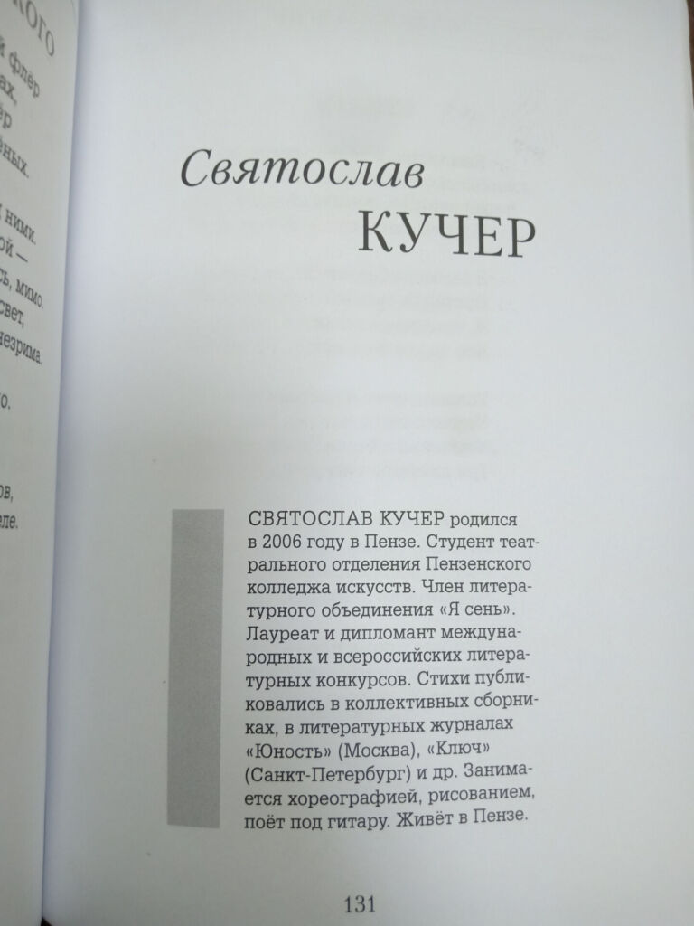 Стихи студента Пензенского колледжа искусств Святослава Кучера опубликованы в литературном журнале «Образ: альманах современной поэзии» (№13, 2025 год).