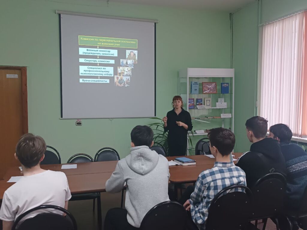 В ходе встречи студентам рассказали ключевые аспекты организации воинского учёта в Российской Федерации.