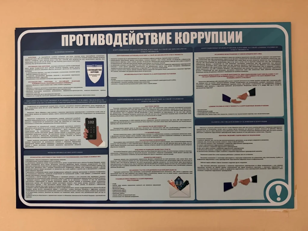 Плакаты и информационные стенды помогут студентам и сотрудникам быть в курсе основных правил антикоррупционного поведения, знать свои права и способы реагирования.