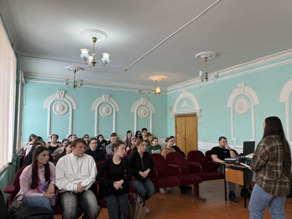 Мероприятие прошло в формате интерактивного квиза, где студенты в игровой форме узнали о сфере добровольчества, платформе “Добро.рф” и мероприятиях Ресурсного центра добровольчества Пензенской области.