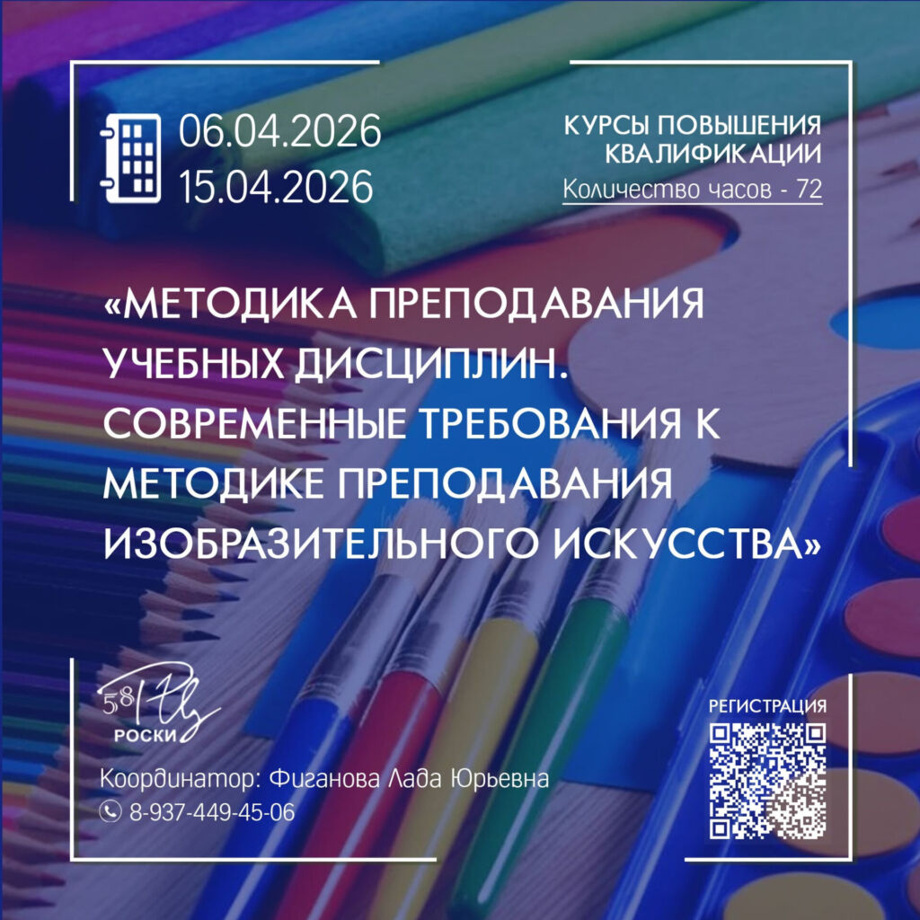 🚀 Скоро! Курсы повышения квалификации для преподавателей ДХШ, художественных отделений ДШИ Пензенской области. Приём заявок.